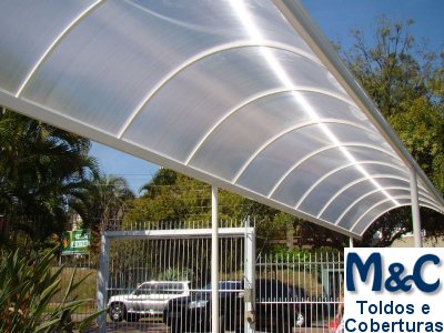 Coberturas em Policarbonato são excelentes para proteção solar ou contra chuva pela sua alta resistência e durabilidade.