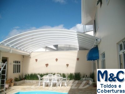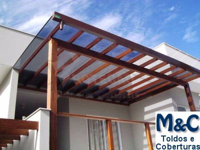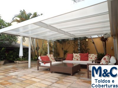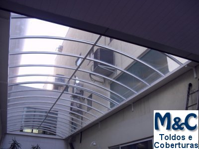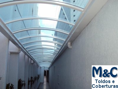 Coberturas em Policarbonato são excelentes para proteção solar ou contra chuva pela sua alta resistência e durabilidade.